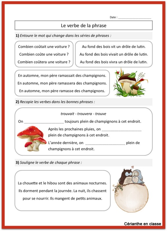 TROUVER LE VERBE DE LA PHRASE AU CE1