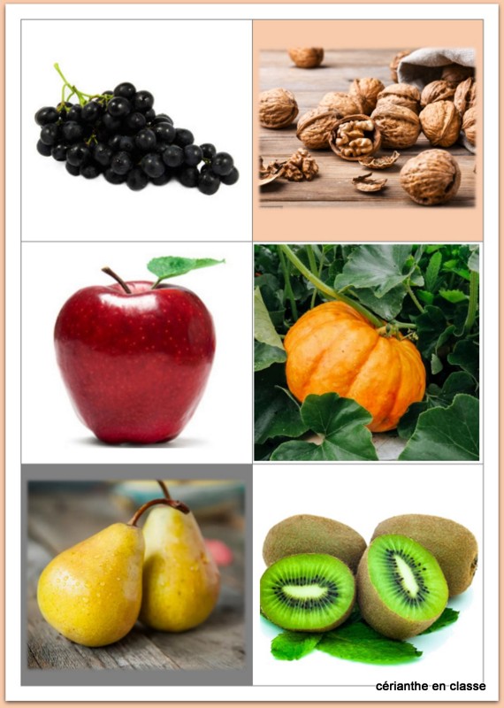 Au départ, je me suis inspirée de la chanson « C’est l’automne », que vous trouverez dans cet article. J’ai d’abord voulu trouver des idées qui prolongeraient celles de la chanson tout en conservant le thème de l’automne, mais j’ai fini par élargir pour en arriver à ce qu’indique le sous-titre. Pour autant, vous pouvez faire référence à la chanson si vous l’avez apprise à votre classe. Je précise aussi que les séries d’images (feuilles d’arbres, champignons, fruits, oiseaux, insectes) font appel à la catégorisation, ce qui peut enclencher un autre travail sur les végétaux ou la classification des animaux. Un article est dédié à ce dernier thème, si ça vous intéresse. C’est ici.