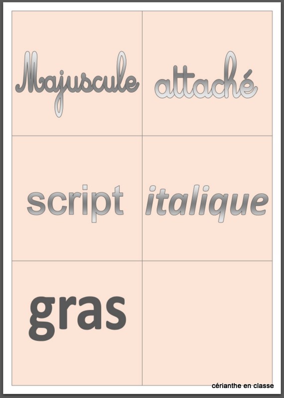 Pourquoi ne pas mettre un peu de lecture en séance de maths ? En plus, insister sur la notion de voyelle ne peut pas faire de mal : ça aide à intégrer davantage. Il faudra donc les classer en fonction de la police utilisée, mais vous pouvez vous contenter de parler « d’écriture » plutôt que de police. Les lettres sont présentées soit en majuscules, en cursive (ou en attaché), en script, en italique et en gras. Ces deux dernières notions sont sans doute mal connues des élèves mais une rapide explication suffira.