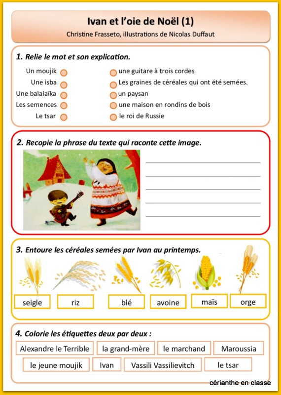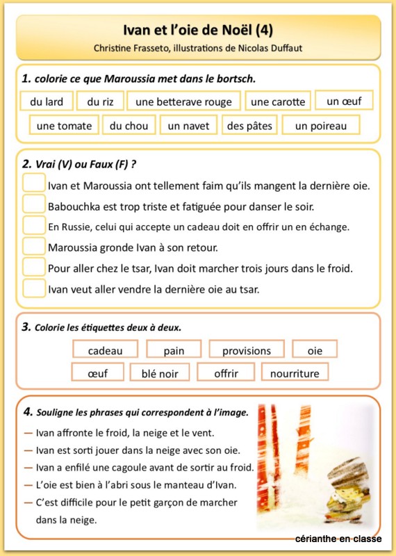 J’ai séparé l’histoire en six épisodes avec une fiche d’exercices correspondant à chacun.