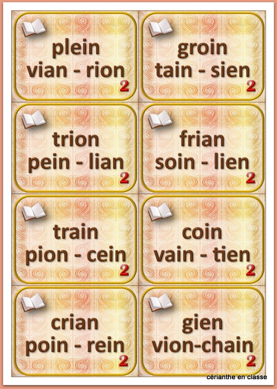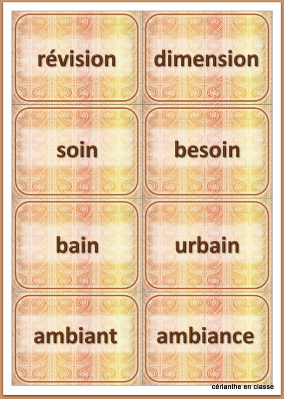 — Vingt-huit cartes avec des mots terminés par ian ou ain.