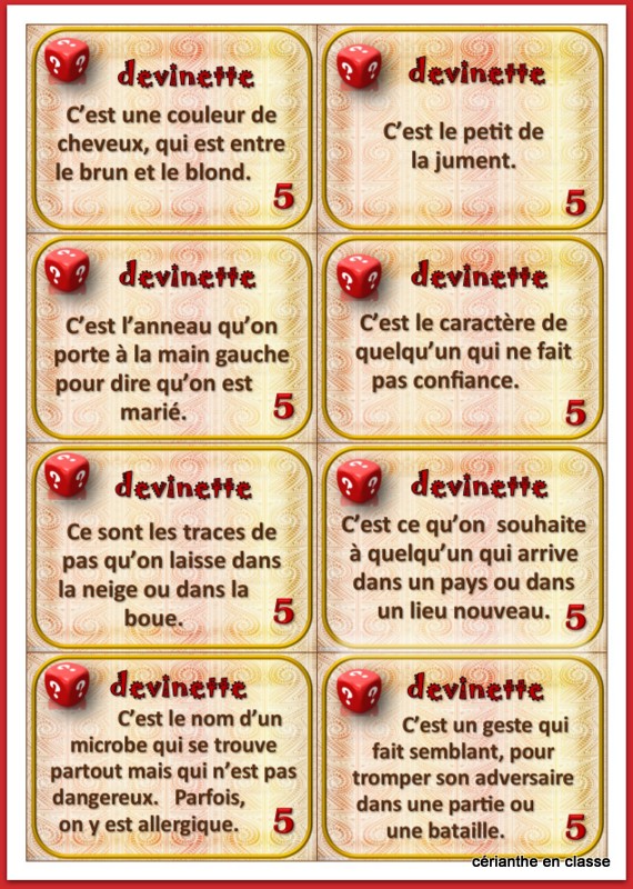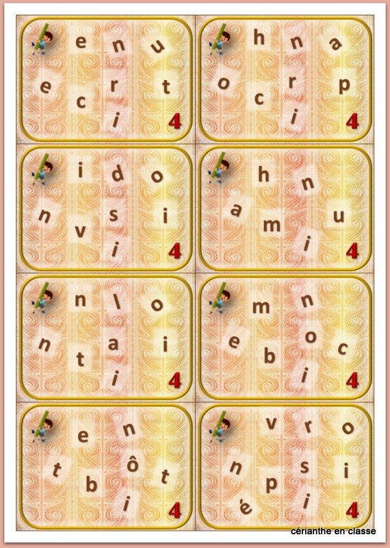 Bonjour Eloïse, je suis vraiment désolée, votre message était passé dans les indésirables. Etrange ! Bref, je viens de le trouver et de vérifier. Pour les jeux que vous mentionnez, il faut simplement utiliser les cartes-mots qui servent au début.